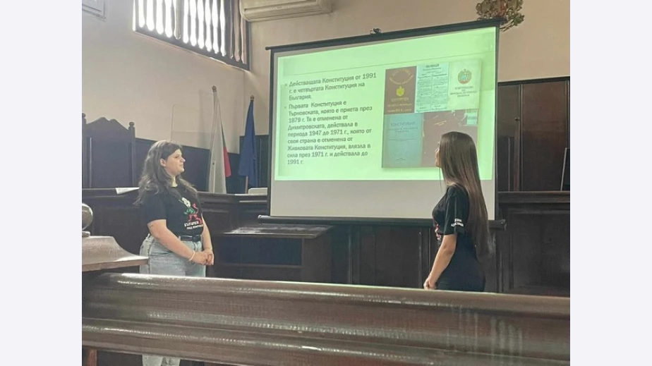 Те представиха своята презентация и филм за Търновската конституция пред учениците от 10 ОУ "Алеко Константинов", които гостуваха в Съдебната палата.