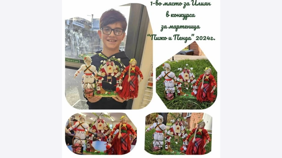 „Конкурсът за мартеница „Пижо и Пенда” 2024 г., организиран от Сдружение „Дай, бабо, огънче” гр. Перник, удостои нашето училище със специалната награда за запазване и предаване на традициите! Нашият ученик Илиян Кирилов е класиран на 1-во място с индивидуално участие в изработването на най-красивата мартеница! Благодарим на всички деца за положените труд, креативност, желание и старание, с които успяхме да постигнем тези успехи! Гордеем се с всички вас“, посочват от учебното заведение.