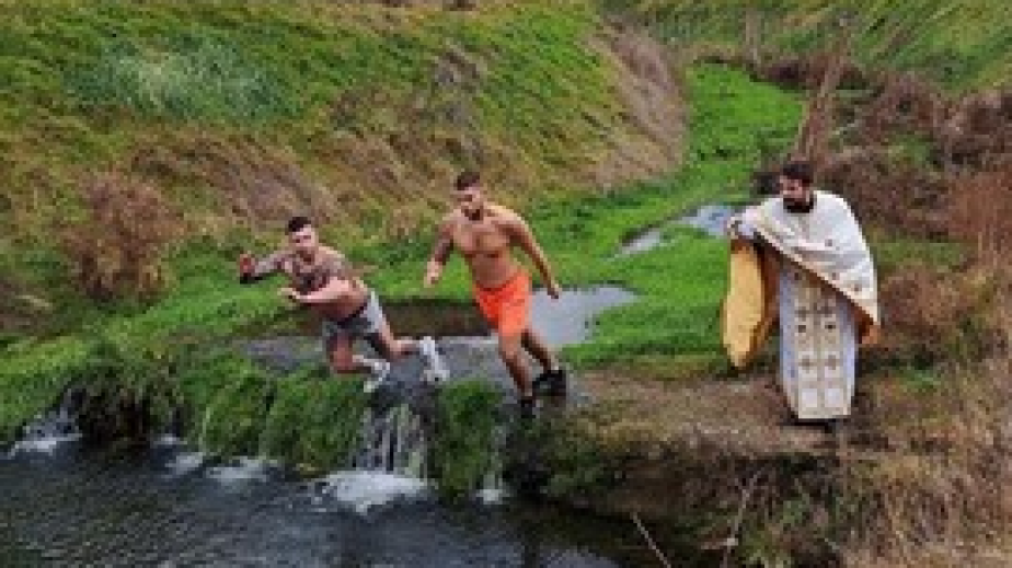 Ученик извади Богоявленския кръст в Брезник днес. 18-годишният Слави Иванов Славчев скача във водите на реката в града за втори път.