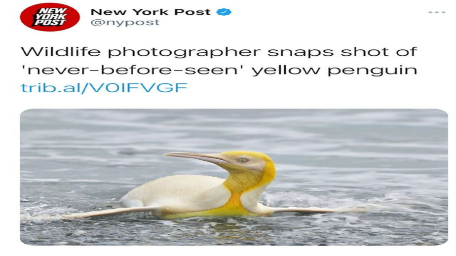 Ив Адамс ръководил двумесечна фотографска експедиция из Южния Атлантик, когато решава да спре на плажа на Южна Джорджия. „Никога преди не бях виждал или чувал за жълт пингвин. На този плаж имаше 120 000 птици и този беше единственият жълт”, каза Адамс пред Kennedy News and Media.