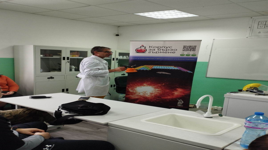 Спецеален гост бе Доцент Лъчезар Христов от факултета по химия и фармация към СУ "Свети Климент Охридски", който забърка страхотно научно шоу, което зарадва бъдещите химици и фармацевти и настоящи ученици на езиковата гимназия.Всички посетили шоуто чуха и усетиха колко зрелищна може да бъде науката и колко е пленяваща химията .Организатор на събитието беше директора и химик на гимназията Теменужка Крумова.