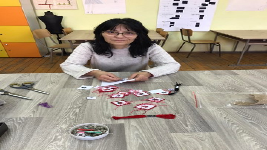Учителката от СУ „Темелко Ненков“ Здравка Костадинова твори мартеници и медальони българска бродерия, увлича се по бродерията още от дете като първи нейни наставници са баба й и майка й в родния Плевен. По-късно завършва Техническия университет в София по специалността „Техника и технология на текстила и облеклото“. Работила е в шивашки предприятия като технолог, а от есента след придобита учителска специализация е учител по специалните предмети и учебна практика.