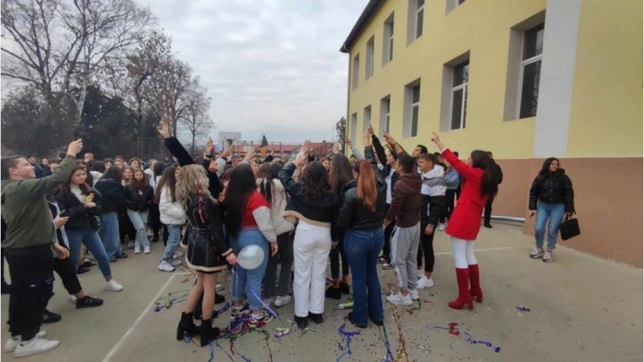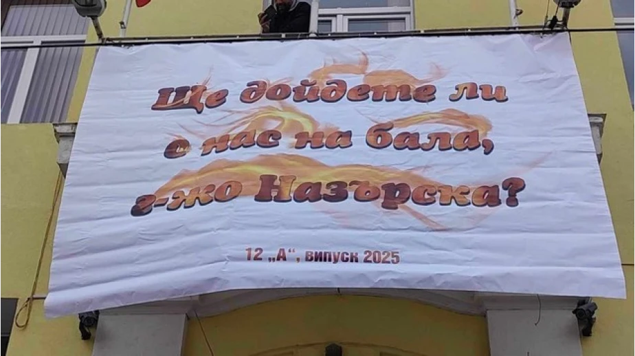 Около 10 ч. в училището за демонстрация пред възпитаници и преподаватели пристигнала пожарна, издигнал се дим и засвирили сирени. Преподавателката, която е класна на 12 А, била евакуирана от сградата, но като погледнала към училището от прозореца на нейните ученици бил спуснат плакат с надпис „Ще дойдете ли с нас на бала, г-жо Назърска?“.
