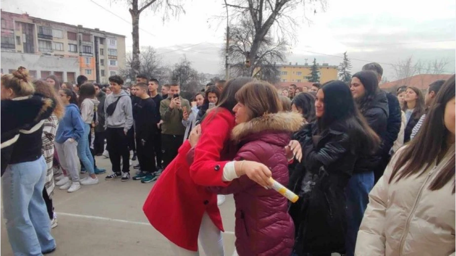 Учителка по английски бе евакуирана от СУ „Св. Св. Кирил и Методий“ днес в Радомир. Опасната ситуация обаче се превърна в един от най-вълнуващите моменти в живота на Виолета Назърска.