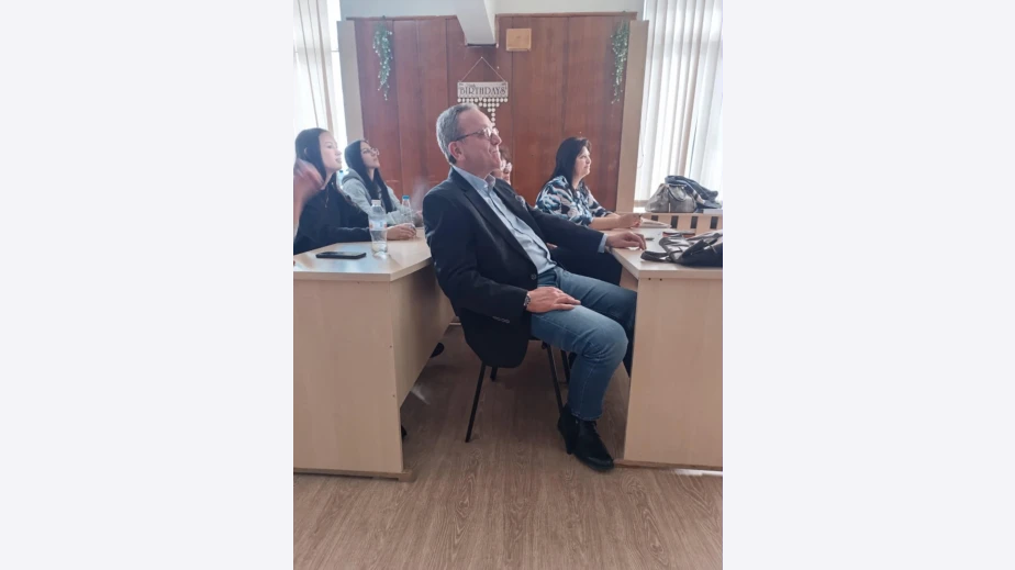 Учителката по БЕЛ София Стойнева в ГПЧЕ "Симеон Радев " е изненадала своите ученици, като е поканила в часа по Публично общуване професор Петър Стоянович.