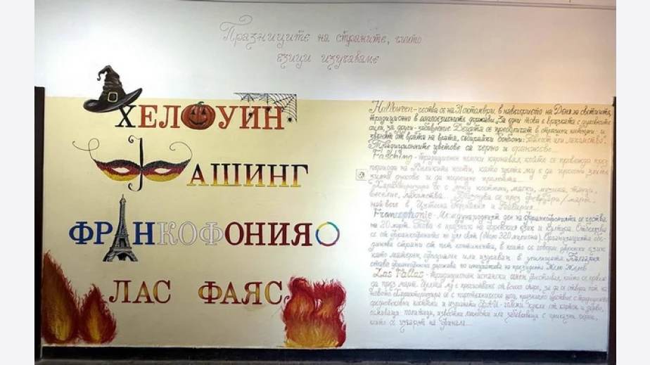 Уникален стенопис, отразяващ празниците на страните, чиито езици изучава ГПЧЕ „Симеон Радев“ в Перник бе изрисуван в школото. Той е дело на Владислава, Калина, Ивайла и Лора от 10 „Г“ клас в учебното заведение.