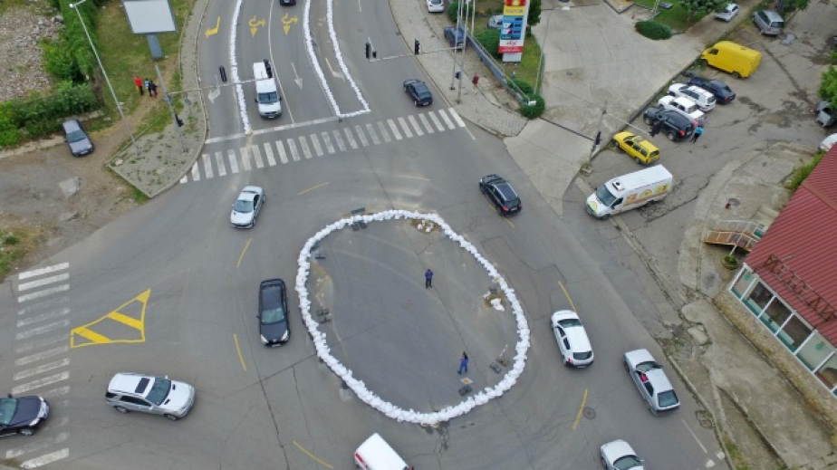 Необичайно кръгово кръстовище изградено от чували с пясък. Странното съоражение се намира в Стара Загора. Въпреки че на пръв поглед изглежда доста нетипично, се оказва, че върши работа, пише Днес.бг.