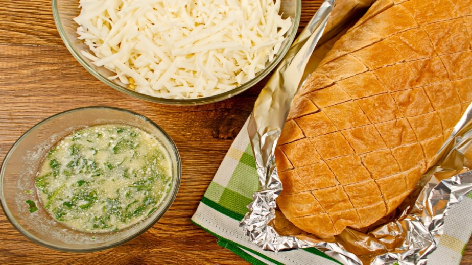Завийте хляба във фолио за печене и сложете във фурната за около 15 минути.
