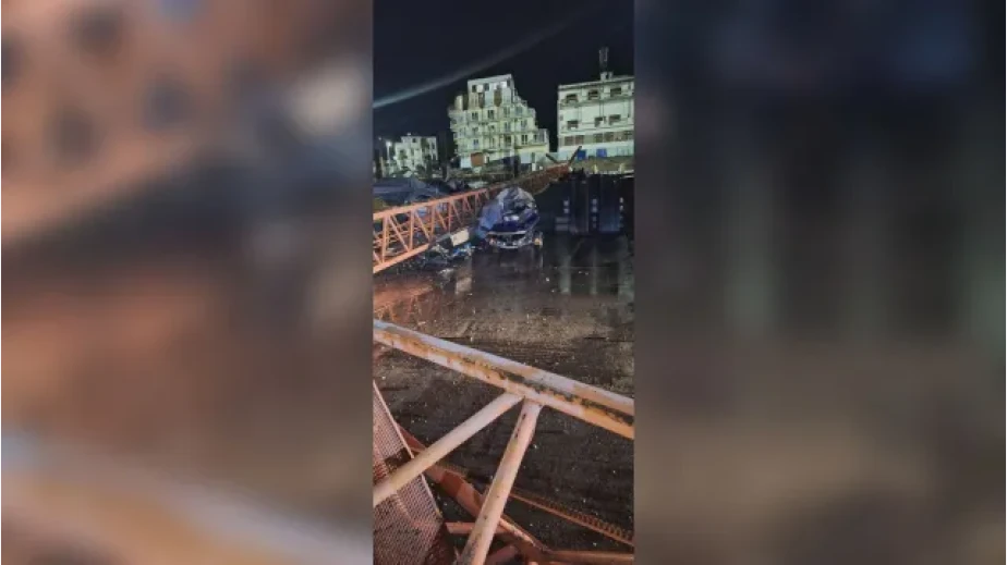 50-метров кран падна върху лодки до Рибарското пристанище в Поморие. Ураганен вятър е съборил крана.