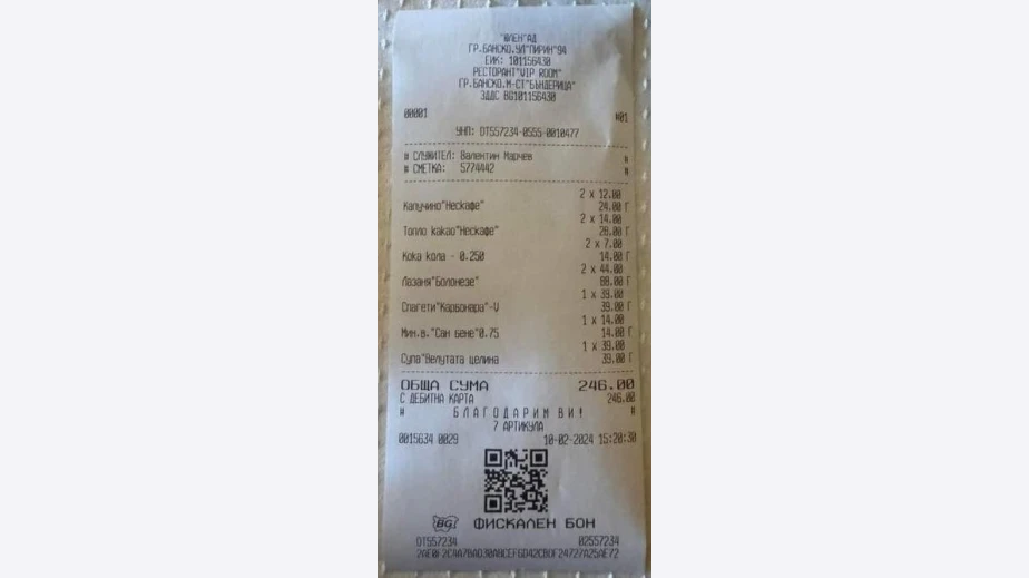 Носете си сандвичи от вкъщи и сгряващи напитки в термос. В противен случай стоплянето около камината, посръбвайки супичка и навивайки на вилица спагети, може да ви струва доста скъпо. Това е видно от касова бележка, която вриви социалните мрежи. Сметка от почти 250 лв получи компания от пишман скиори осмелили се да поръчат непретенциозни ястия, които по цените им, бихме могил да предположим, че са приготвени лично от Гордан Рамзи. /Източник: Lupa.bg