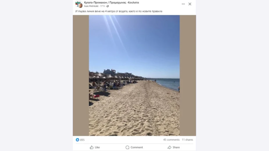 "И първа линия вече на 4 метра от водата, както е по новите правила", е написал авторът на поста.