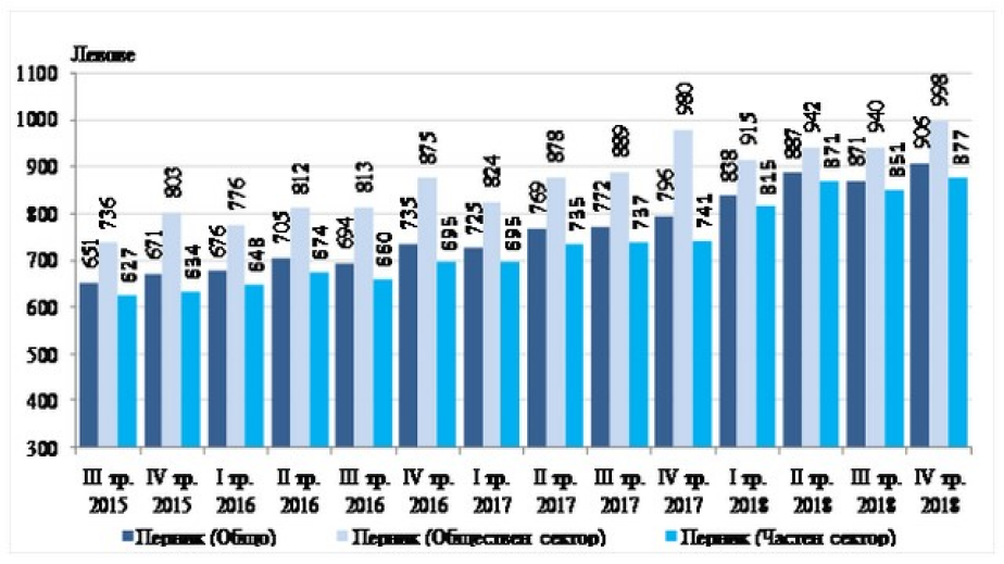 В сравнение с четвъртото тримесечие на 2017 г. средната месечна работна заплата за Пернишка област нараства с 13.8%. Спрямо същия период на предходната година средната месечна работна заплата в обществения сектор се увеличава с 1.8%, а в частния сектор - с 18.4%.