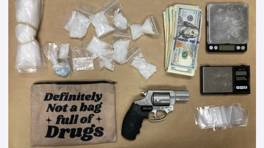 Полицейското бюро в Портланд съобщи, че са намерени наркотици, везни, пари в брой, и зареден пистолет.