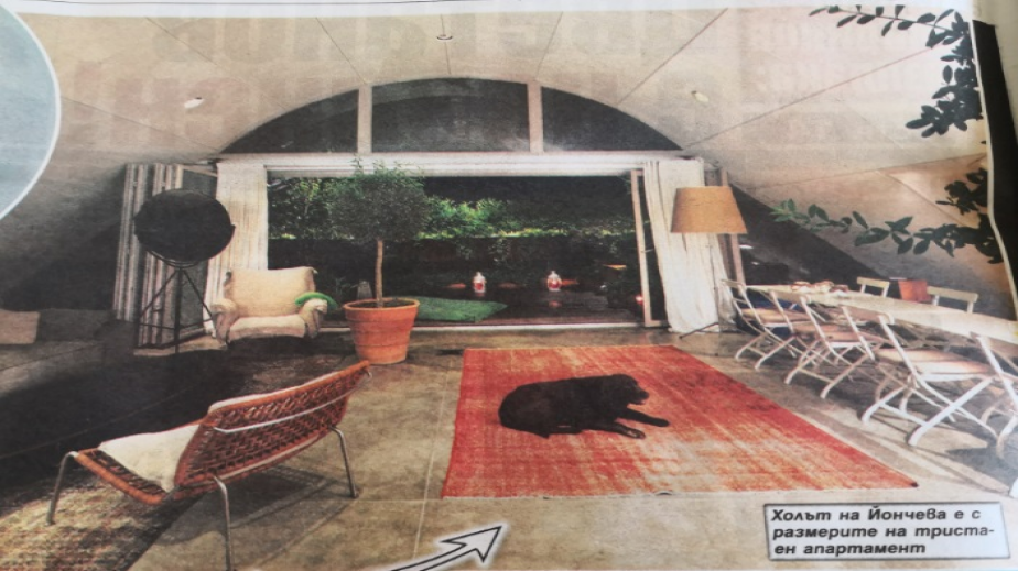 От фотосите се вижда, че трапезарията на журналистката е с размерите на тристайна панелка, а насред помещението се издига и камина във футуристичен стил. Масата за хранене е дълга като за прием, а мебелите, отличаващи се със странни форми и цветове, са дизайнерски и носят своя собствена история. Най-фрапантен обаче е „дворът“ на Йончева, за който в квартала се носели легенди. Съседите на Елена не били чували за нещо подобно и се дивели как е възможно хем да си в апартамент, хем да имаш градина.