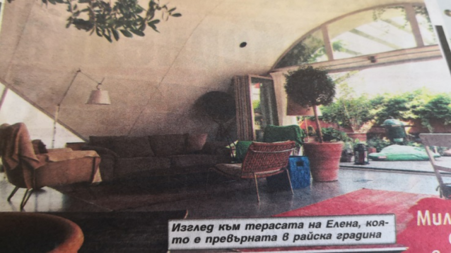 Идеята всъщност била на половинката на социалистката – архитект Пламен Тодоров, който успял да превърне просторната тераса в райска градина. Екзотичната растителност, романтичните фенери и креслата за отдих обаче можели да бъдат видени само от гостите на Елена и от птичи поглед, защото с Пламен опасали терасата с висока ограда и избуяли храсти, за да не могат простосмъртните да им досаждат с любопитните си очи.