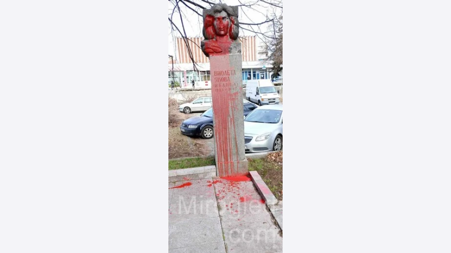 Паметникът на партизанката от Радомирския партизански отряд Виолета Якова на площад „Войнишко въстание“ е осквернен миналата нощ. Той е залят целия с червена боя, но до момента извършителите не са установени.