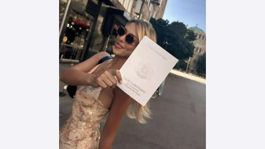 Булката премина по улиците на София, гордо показвайки брачната хартийка и щастливата си усмивка. Снимките ѝ преливат от радост и вълнение, а новият етап от живота ѝ започна с блясък и много любов
