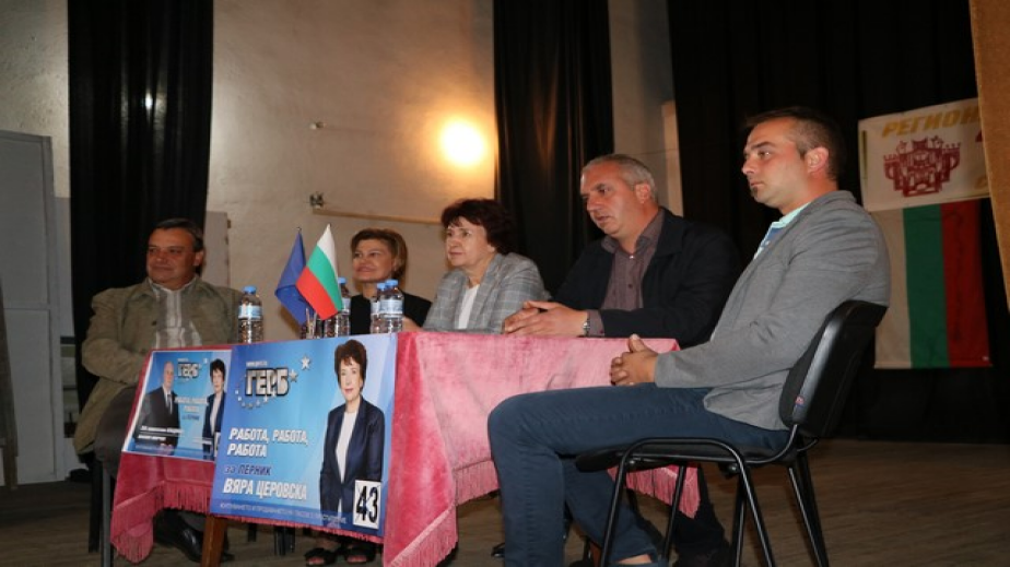 „Важното, което успяхме да направим, е да съдействаме републиканският път Драгичево-Рударци-Кладница да бъде изцяло и основно ремонтиран. За първи път от средата на миналия век досега, ние успяхме да извоюваме средства, с които ще бъде подменена водопроводната мрежа“, отбеляза кандидатът за кмет на община Перник Вяра Церовска, която представи приоритетите в своята програма за управление на община Перник в следващите 4 години. „Успяхме да запазим духа на Кладница. Ще продължаваме да работим за това. Поели сме ангажимент и ще изградим нова спортна площадка в двора на ОУ „Св. Климент Охридски“. Наша основна задача ще бъде да работим за чистотата и своевременното извозване. Ще работим за развитието на инфраструктурата, асфалтираме улици и тротоари“, каза още кандидатът на политическа партия ГЕРБ. Тя беше придружена от народния представител д-р Александър Александров, областния управител Ирена Соколова и кандидати за общински съветници от политическа партия ГЕРБ.