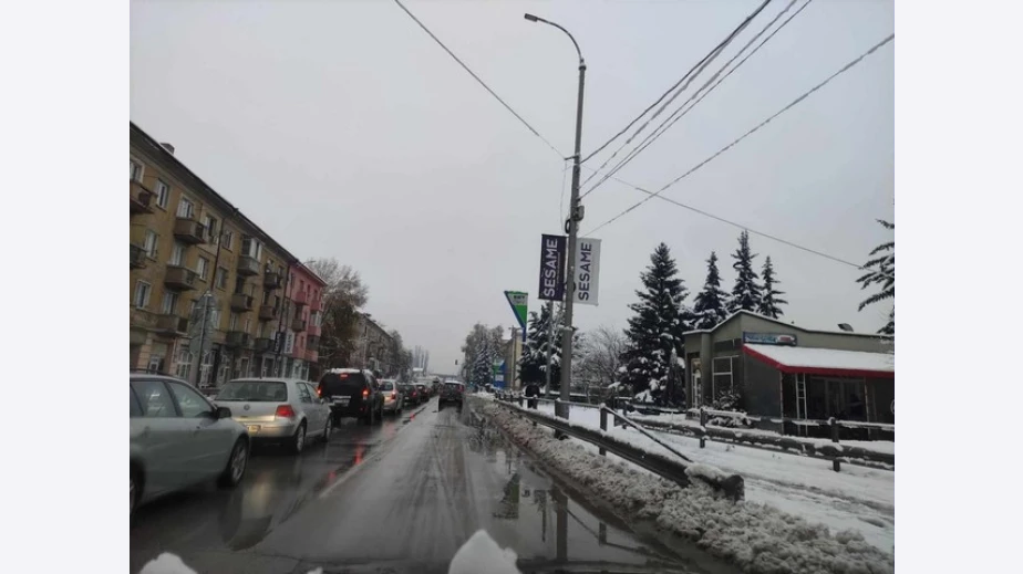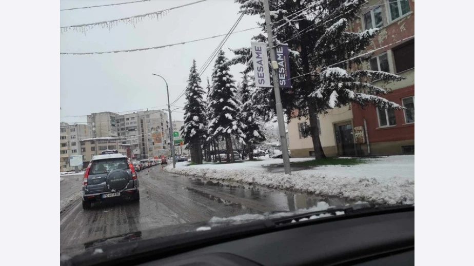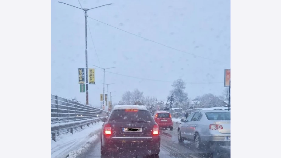 Верижна катастрофа и задръствания превърнаха излизането от Перник в ад тази сутрин. Градът осъмна със снежна покривка.