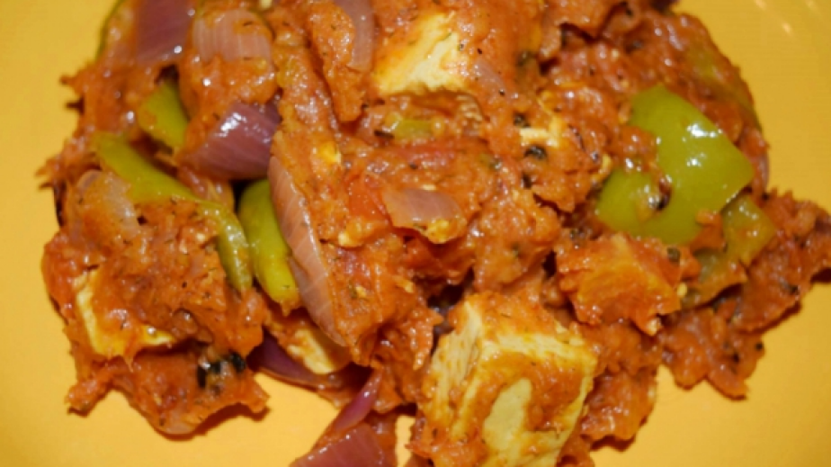 Яденето се оставя да къкри на слаб огън и се разбърква, за да не загори. След 5 минути се слагат и нарязаните на кубчета домати. Когато доматите омекнат, се добавя и брашното, което предварително трябва да се смеси с червен пипер и куркума.