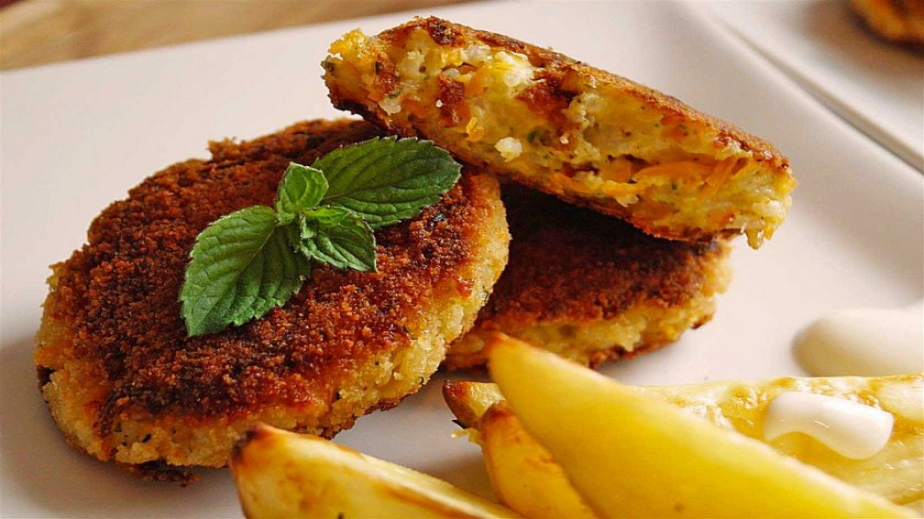 Оризът, морковите, лукът и жълтото сирене се смесват с яйцатам билките, черен пипер и сол.