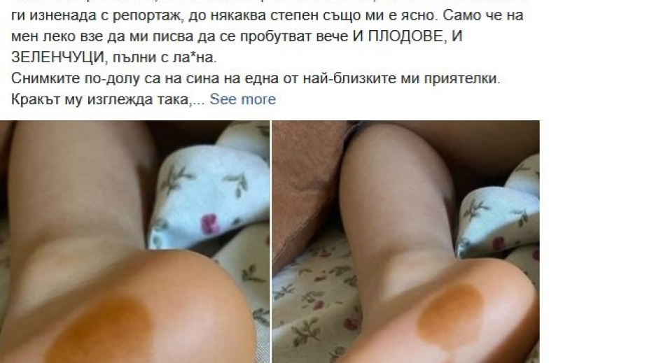Снимките по-долу са на сина на една от най-близките ми приятелки. Кракът му изглежда така, както и този на баща му, между другото, защото ядоха диня, в която по-късно се оказва, че явно има АЦЕТОН.