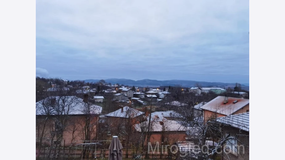 Високите полета на Перник осъмнаха със сняг тази сутрин. Покривите на къщите в региона полебяха.