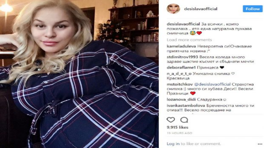 Ето какво гласеше под нея: "За всички, които пожелаха .. ето една натурална пухкава снимчица" Не сме ние тези, които биха определили Деси Слава като пухкава, все пак жената е бременна и всеки момент ще ражда. Освен доста напълняла и с едро коремче, русокосата звезда прави впечатление и с тотално естествената си визия.