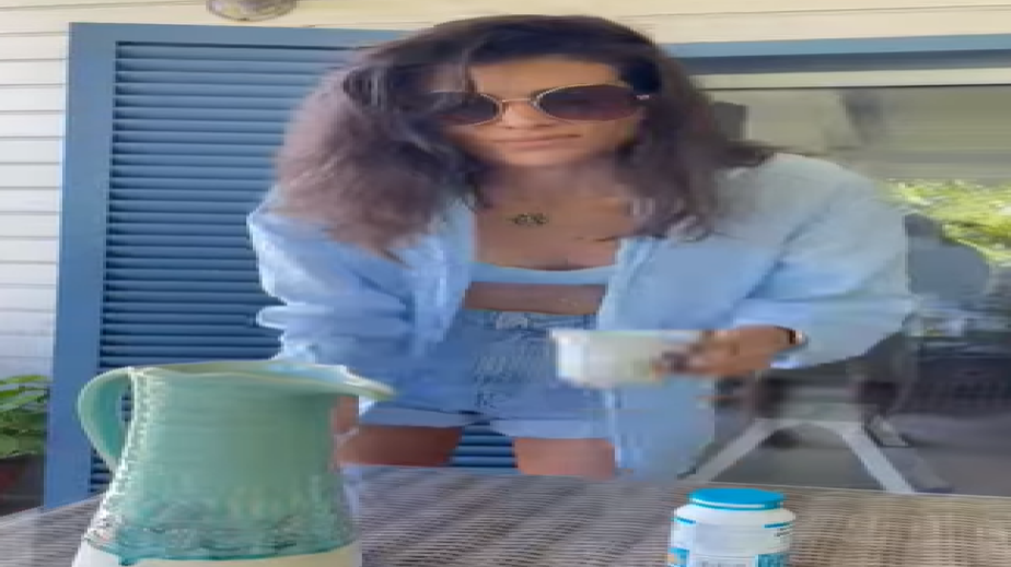 Във видеото половинката на тв продуцента Емануела показа част от прелестната градина на дома им, разхождайки се по къси панталонки и рекламирайки пробиотик за защита на пикочо-половата система. /Източник: Лупа.бг