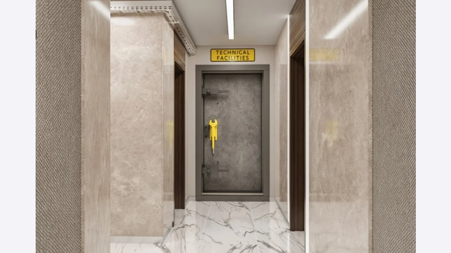 Непосредствено преди входа на техническата зона ще откриете сървърно помещение с подходяща вентилация за него – особено подходящо, ако сте бизнес компания за съхранение на ценна информация с отдалечен достъп.