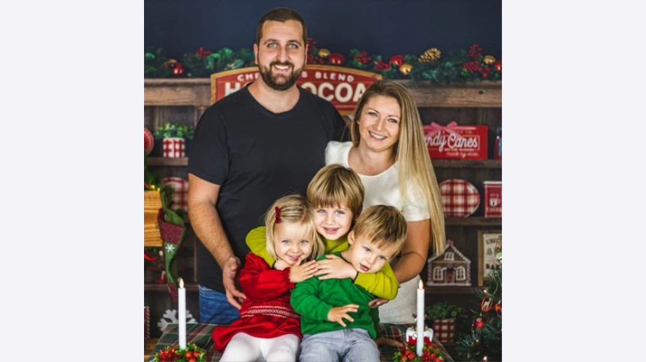 На празничните кадри малчуганите позират с 4-годишното си братче Георги и своите майка и баща.
