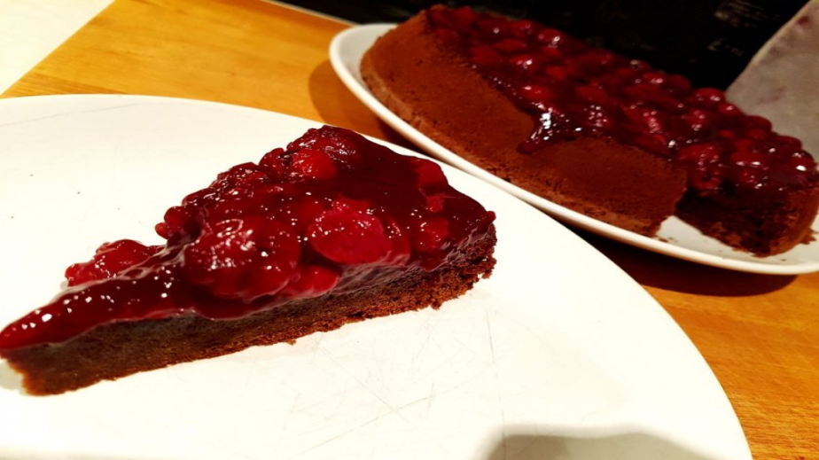 С вишневата смес се залива изстиналият блат. Оставя се в халадилника за около 1 час.