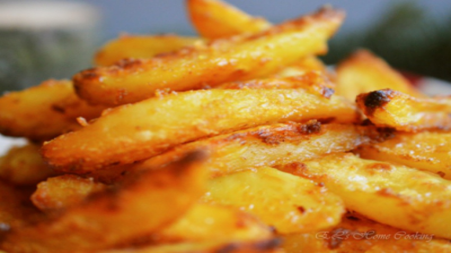 На този етап картофите са готови за консумация. Но ние ще ги направим още по-вкусни. За целта ги изсипете в съд за печене и отгоре поръсете с малко пармезан.