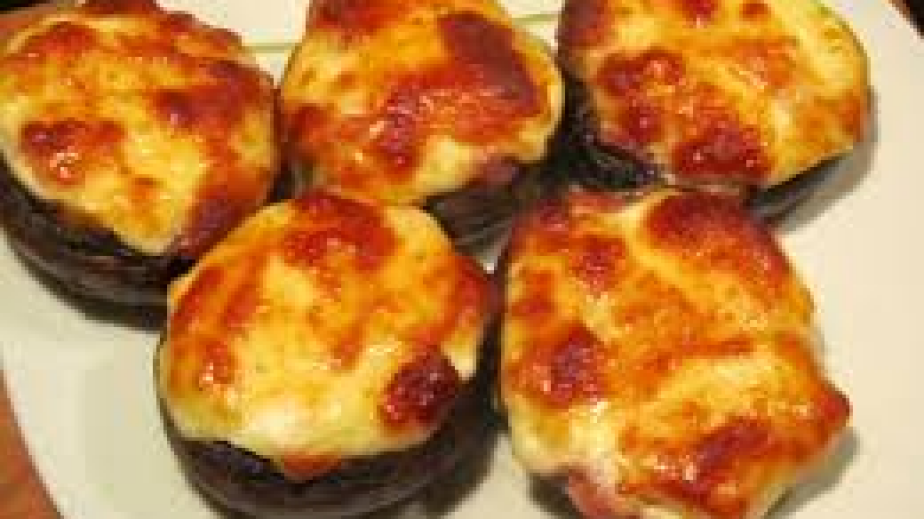 С готовата смес напълнете гъбките. Отгоре поръсете с моцарела.