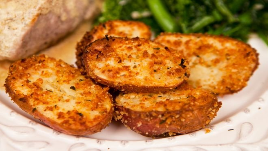 Поръсват се отгоре със зелените подправки. Картофите се поставят отгоре и се разбъркват добре, за да може всеки картоф да попие от сместа. Фурната се загрява на 200 С. Картофите се пекат 40-50 минути. Сервирайте със салата по желание. Накрая поръсете с галета, която е смесена с червен пипер.