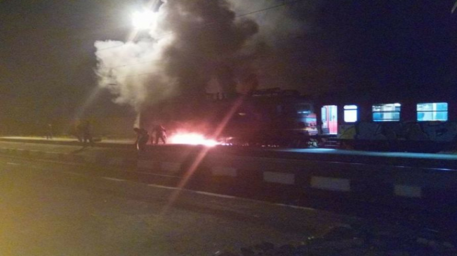 Две пожарни са гасили локомотива на бързия влак София-Бургас. Пътниците са били извозени с автобуси до жп гарата в Бургас.