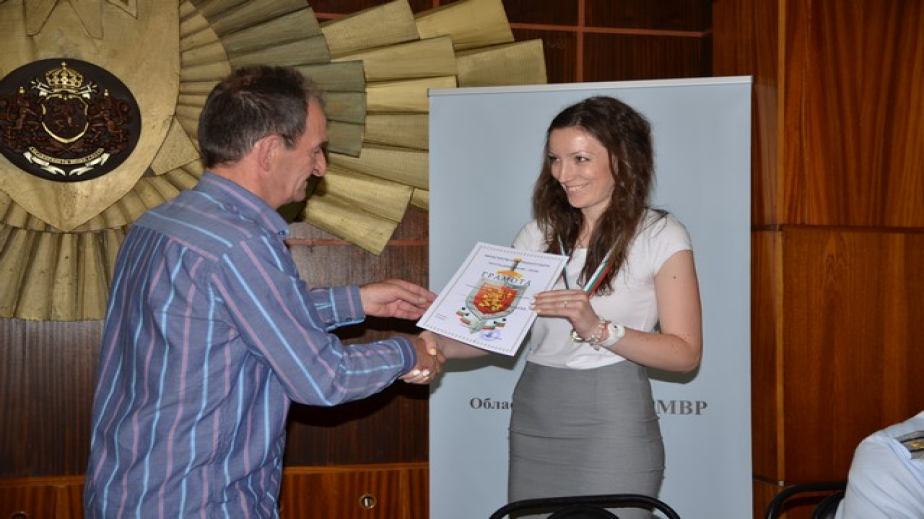 С „Грамота“ от административния секретар на МВР г-н Бойко Славчев е наградена Звезделина Василева – главен юрисконсулт в дирекцията.