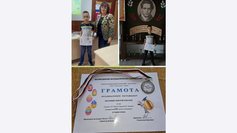 Второкласник от Радомир се класира втори на Великденското математическо състезание. Красимир Христов е възпитаник на ОУ „Христо Смирненски“, с класен ръководител Кристина Бонева