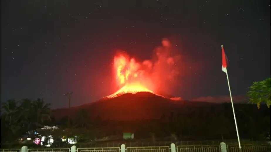 При изригване, регистрирано в 1:05 ч. тази сутрин в провинция Източна Нуса Тенгара, се е образувал гъст облак сиво-черна пепел. В сила е най-високо равнище на тревога.