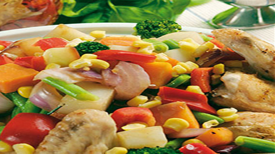 Нарежете месото на средни парчета и подправете със сол и черен пипер. Оваляйте пилето в брашно и запържете за кратко в предварително загрята мазнина, за около 5 минути. Извадете месото и в същата мазнина запържете лука до златисто. Прибавете моркова, целината, чесъна, дафиновия лист, мащерката, сол, черен пипер, виното и бульона. Задушете на умерена температура докато продуктите омекнат добре. Малко преди да са готови прибавете пилето и оставете още 5 минути. Ако ястието е твърде рядко, прибавете малко брашно, като разбъркате добре.
