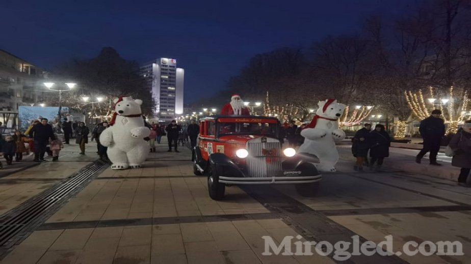 Дядо Коледа пристигна в Перник с ретро автомобил, съпровождан от два големи бели мечока. Преди броени минути гръдът ни грейна с Коледна елха, а около нея имаше стотици радостни перничани.