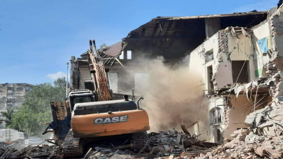 Започна разрушаването на бившата сграда на бившата Гимназия по облекло и туризъм в Перник. Тежка техника рушие сданието, а ул. „радомир% е затворена за движение.