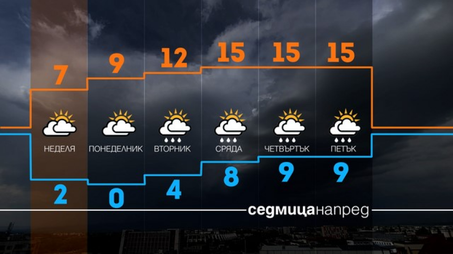 През нощта и в неделя облачността ще се разкъса, на повече места в Западна и Централна България. В планините вятърът ще се усили следобед. В най-топлата част на денонощието термометрите ще се движат в сходни граници – отново между 4 и 9-10 градуса.