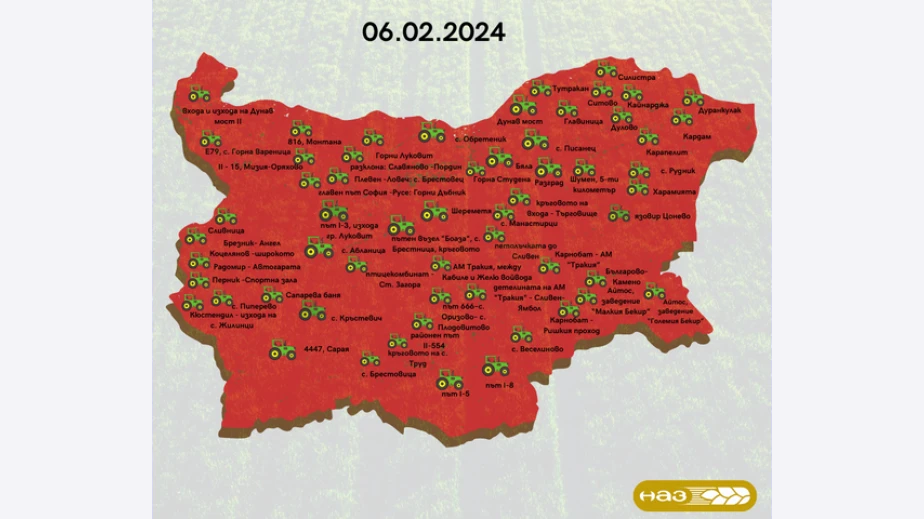 Земеделците излизат на национален протест в цялата страна. Те ще блокират над 80 точки в страната.