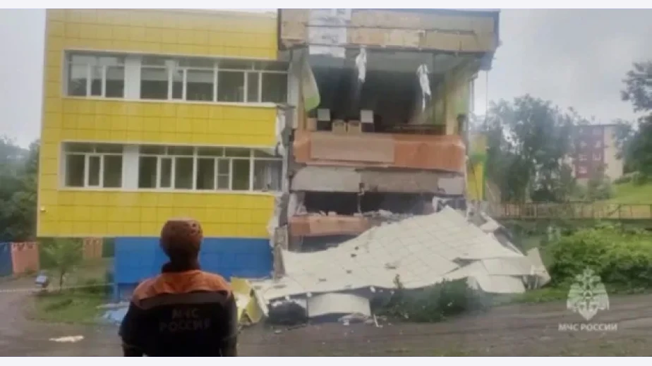 Регионалният губернатор Владимир Солодов публикува видео в Телеграм, на което посещава детска градина, рухнала частично заради труса, чийто магнитуд е бил 8,7 или 8,8.