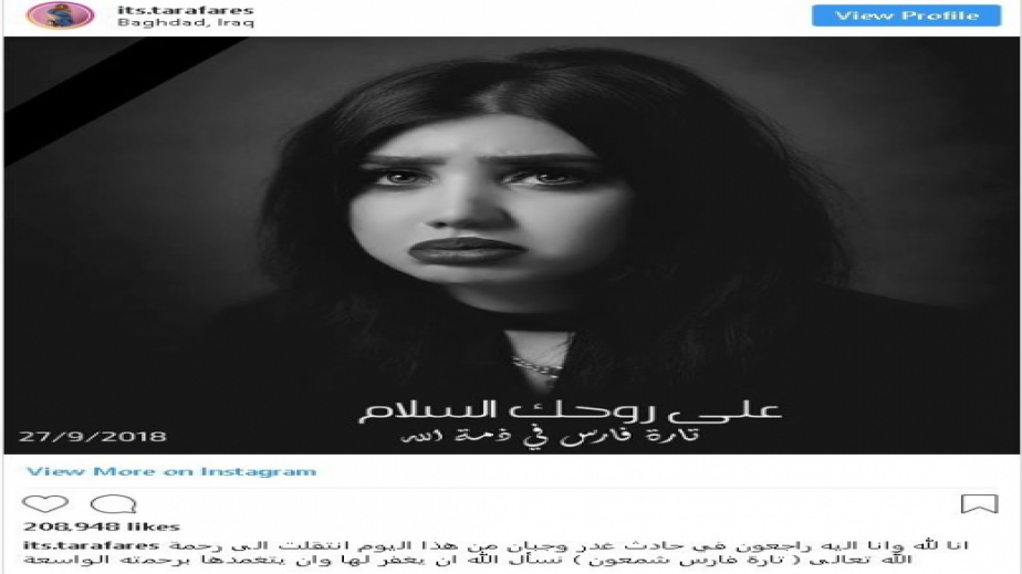 Иракската моделка Тара Фарис, обявена за „Мис Багдад 2015“, е била застреляна в столицата на Ирак, съобщава Kurdistan24, позовавайки се на местната полиция, предава БЛИЦ. 22-годишната красавица е била убита в колата си на 27 септември.