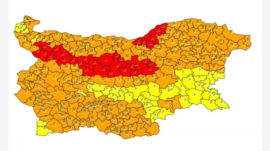 Оранжев код за опасно време е обявен за областите Благоевград, Видин, Варна, Добрич, Кюстендил, Кърджали, Пазарджик, Плевен, Пловдив, Перник, Разград, Силистра, Сливен, Смолян, Стара Загора, Търговище, Хасково, Шумен, София – град, София – област, Ямбол.