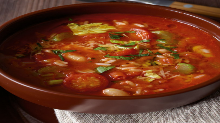2 глави лук , 2 скилидки чесън, 1 малки главa целина, 1 стрък зелена целина, 4 с.л. зехтин или олио, ½ кг домати - може от консерва, 150 г чери доматчета, 1 с.л. захар, 1 ч.л. сух риган, ½ ч.ч. дългозърнест ориз или друг по избор, 1 ч.ч. сварен и отцеден боб - може от консерва, 2 с.л. наситнен магданоз, сол и черен пипер, по желаие жълто сирене - може кашкавал.